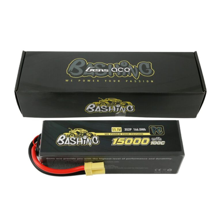 The Gens Ace 15000mAh 3S2P 11.1V 100C LiPo Battery is part of the Bashing Series, designed for maximum power and durability in high-performance RC vehicles. With a massive 15000mAh capacity and a 100C discharge rate, it provides extended runtime and consistent performance. Its soft case design, combined with PC material and a silicone rubber shell, offers dual protection and better grip in the battery tray. Ideal for ARRMA vehicles like the 1/7 FELONY 6S BLX, this battery is built to deliver the power and reliability demanded by hardcore RC enthusiasts.